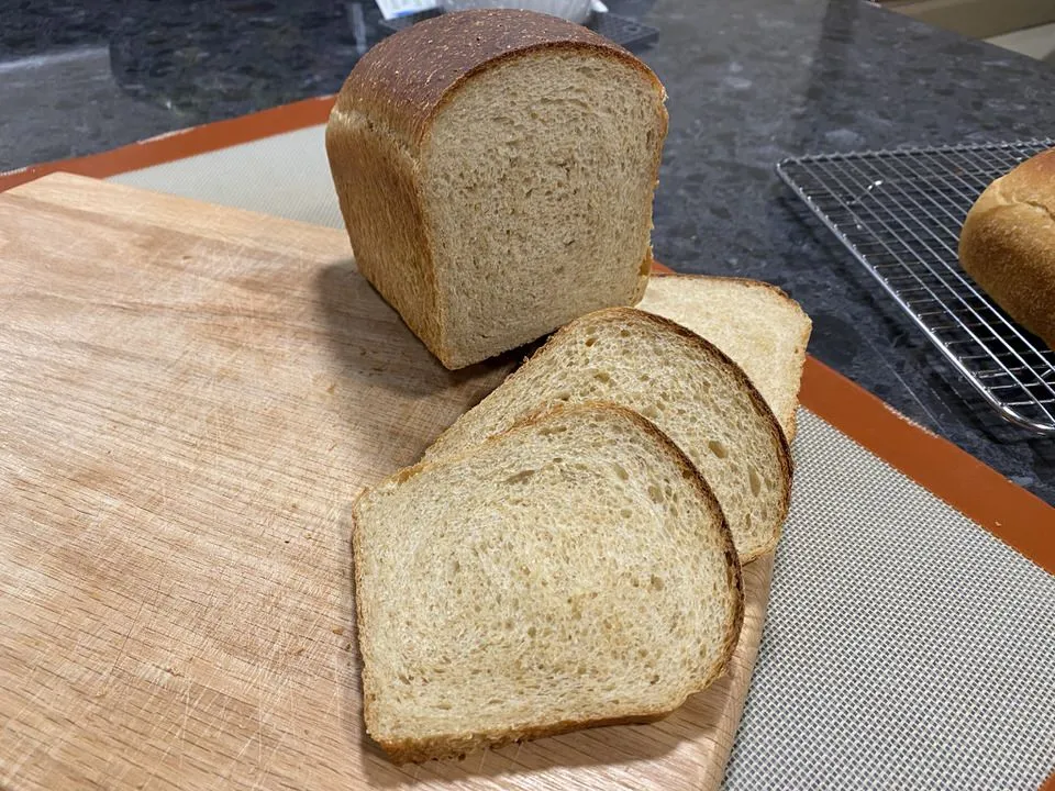 Regarding the stiff WW levain, a note from Debra was “less is more. 5% pre-fermented flour (stiff) didn't alter the loft and texture of this bread, but 10% in a liquid starter noticeably sacrificed some height”. I found that in my attempt to get a good rise, I suspect that the stiff WW levain helped.