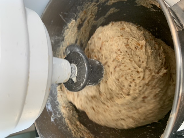Used one whole bag /1# of the new Kernza grain I received this week. I made a YW levain and used YW as part of the hydration. I prepped and flaked 1/2 the Kernza and ground the rest into flour . I have my second order from L’Epicerie for the t65 arriving Monday so used that as well as some Turkey Red that I ground .