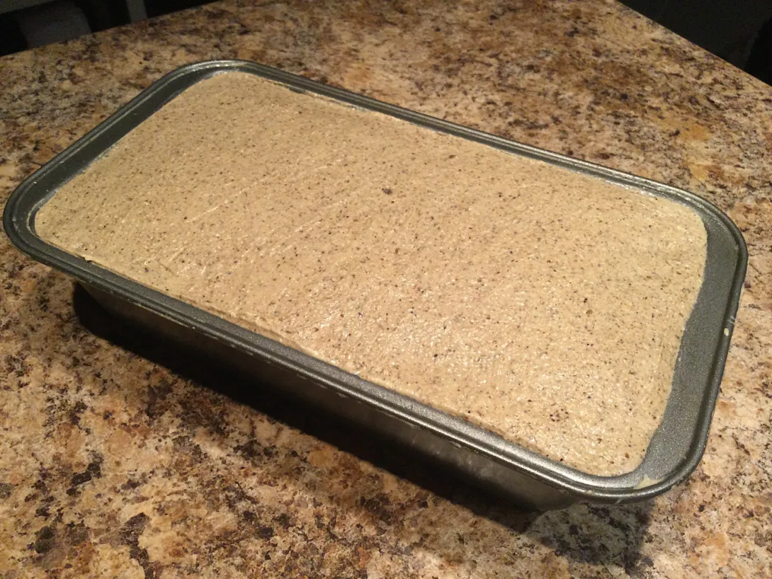 Here I've panned the dough and smoothed the top. My expectations were low... it was late and after a long day I was tired and needed sleep. However, curiosity kept me pushing it along.