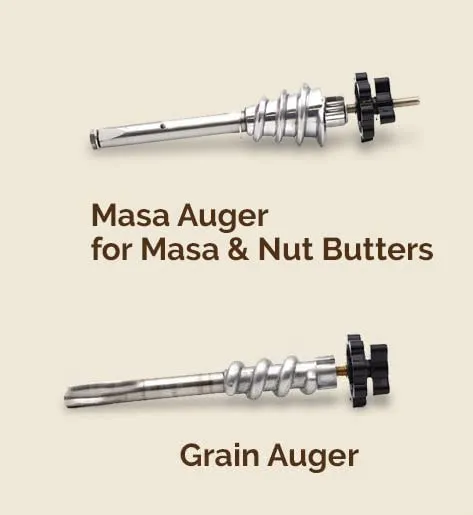 The so-called masa auger looks like it would do a much better job of moving everything toward the grinding stone - I've uploaded an image that shows the two augers side by side.