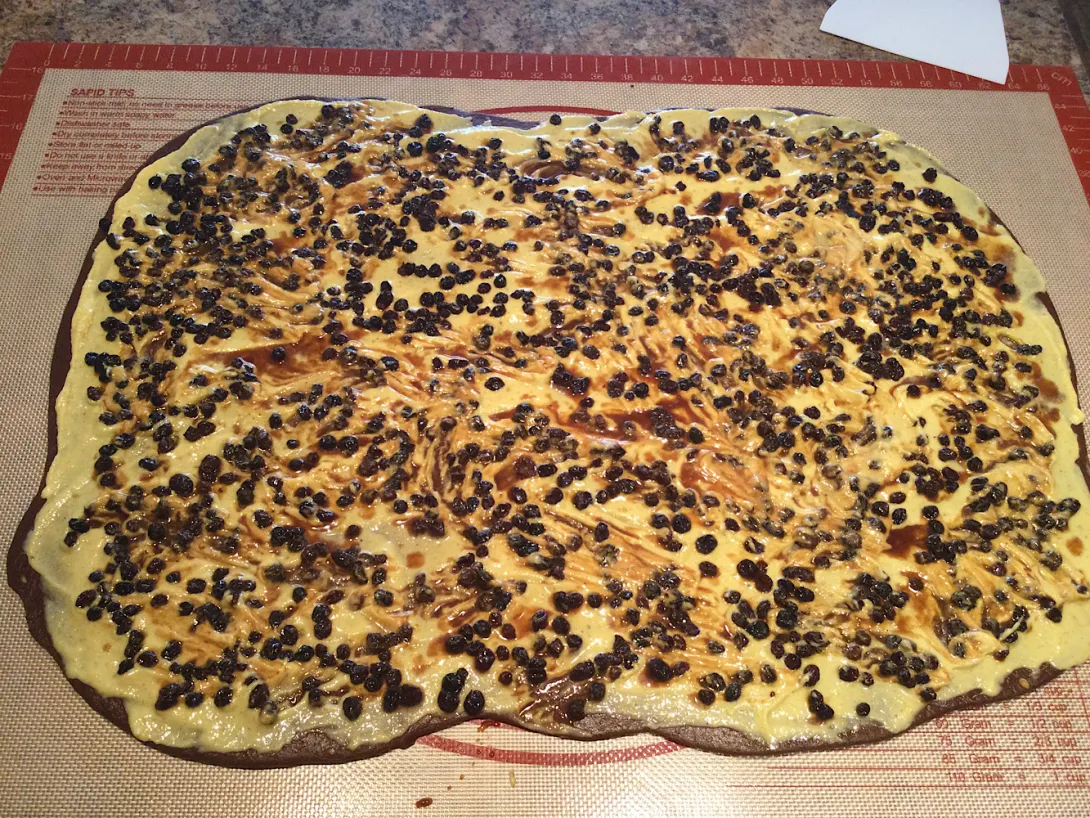 I then rolled the dough up into a tube. NOTE: there was a lot of extra moisture in there vs previous kugelhopfs. Moisture came from the frangipane and espresso.