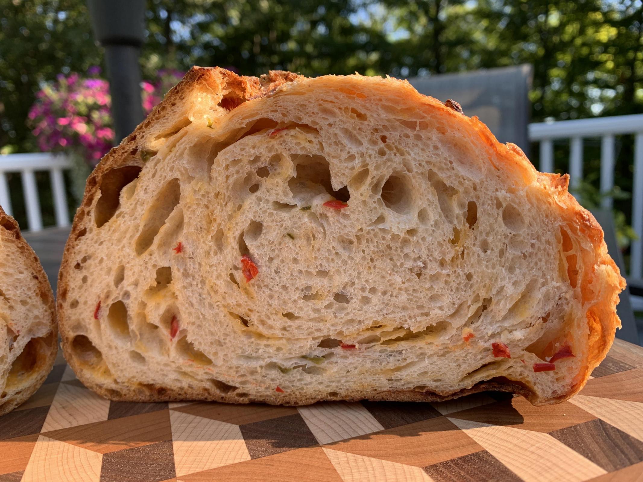 Thanks Ian!  This bread definitely makes great grilled sandwiches.  Also good toast.  Haven’t tried grilled with olive oil, but will try that with the next loaf.  With the number of peppers I have, there will definitely be a next loaf. 😁. Think I’ll up the peppers to 15% though.  10% just wasn’t quite enough to make the pepper flavor pop.