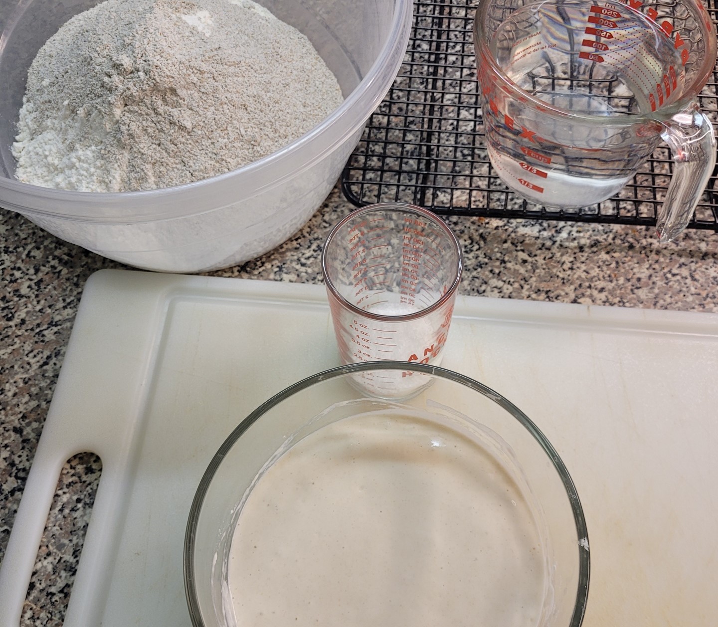 Four, Water, Salt, & "Levain" (wild natural Yeast) Plus time and temperature.