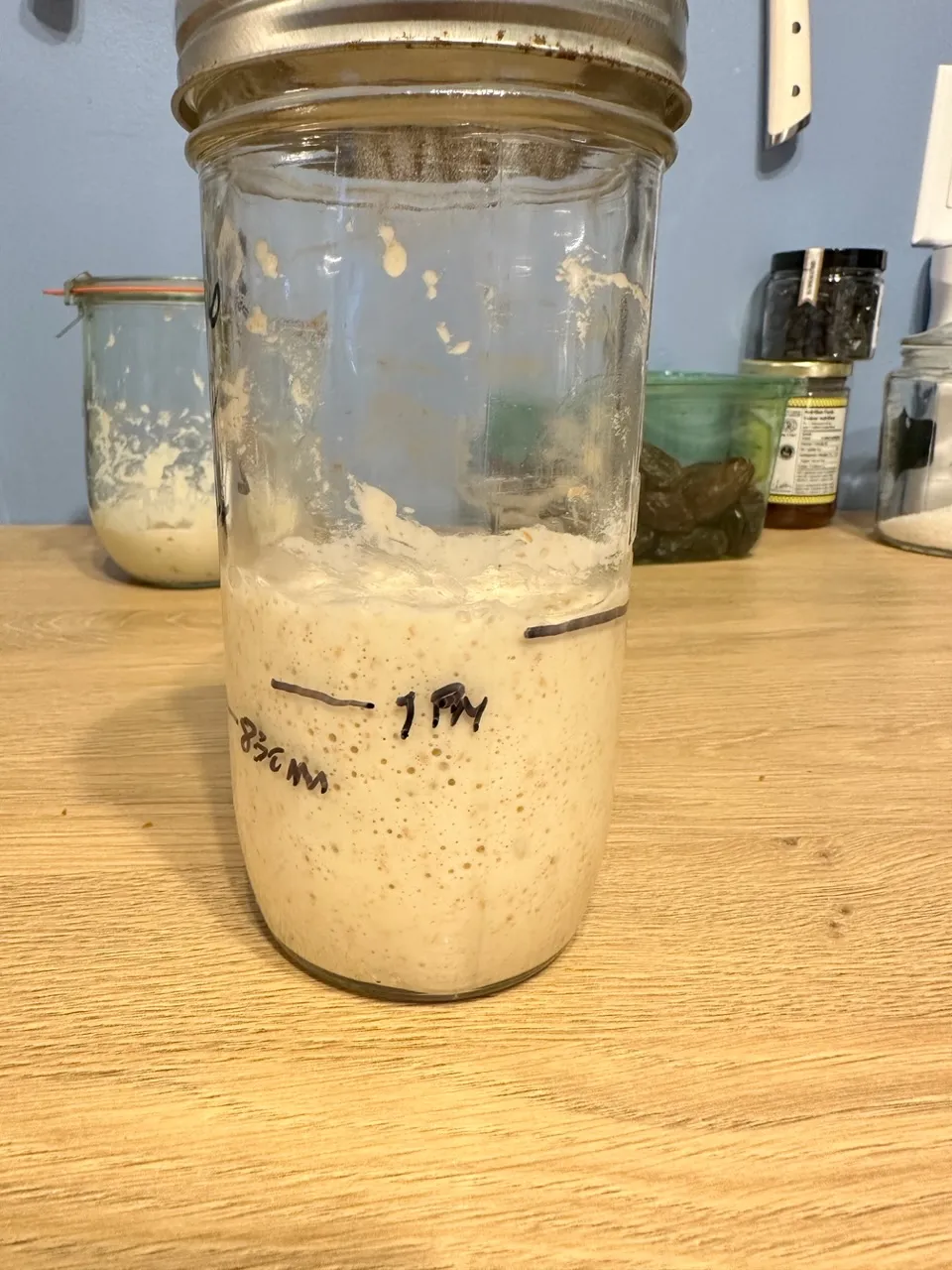 in the picture, my sourdough. The lines are 8am (start), 1:30pm and 4:30pm. The last one is also the maximum I get each time.