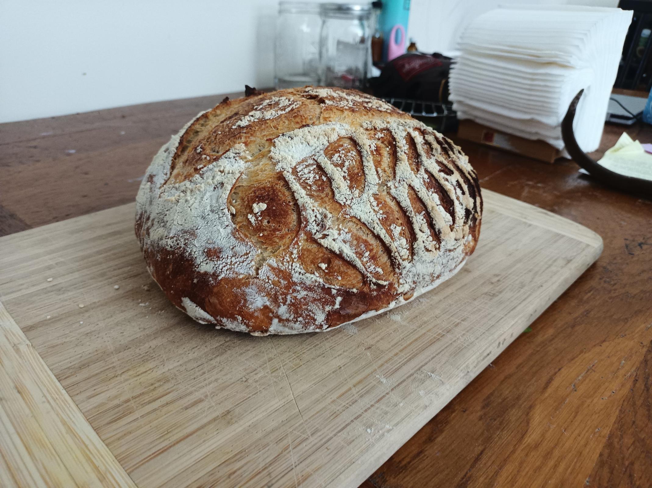 I guess this site only allows you to post one picture in the main post. I'll have to make several posts then. First picture shows the first bread baked without a dutch oven. Super crispy crust, a bit of a weird muffin/mushroom shape to it, perhaps a bit underproofed.