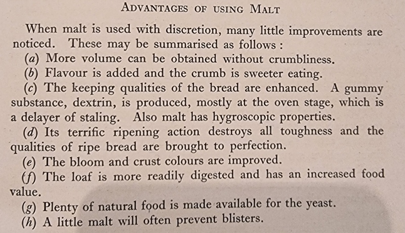 I like that it helps give a good crust colour and acts as something of a dough improver. Walter Banfield has this to say on the subject: