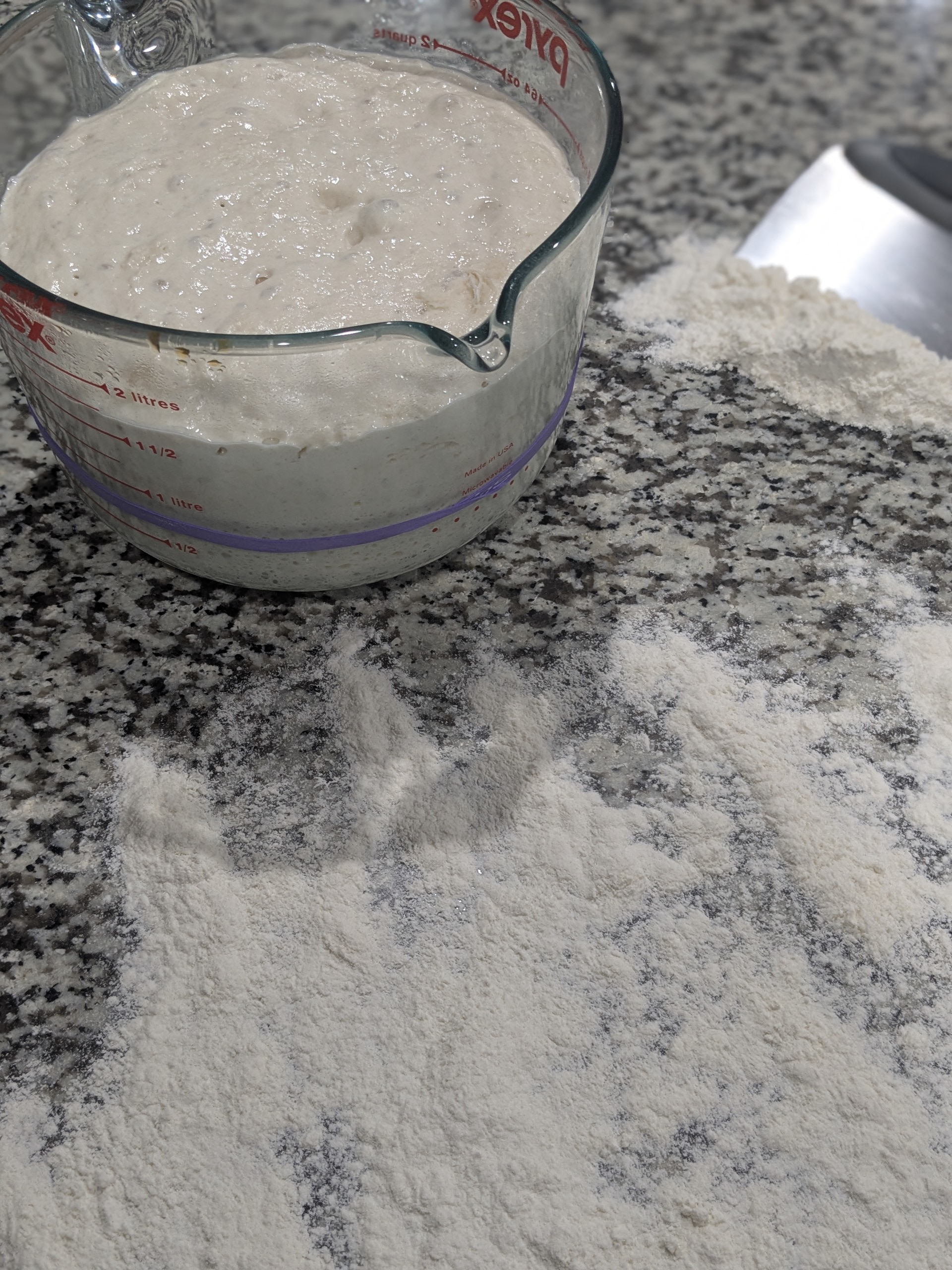 - Slowly add the 90°F water. Mixing until all the flour is incorporated.