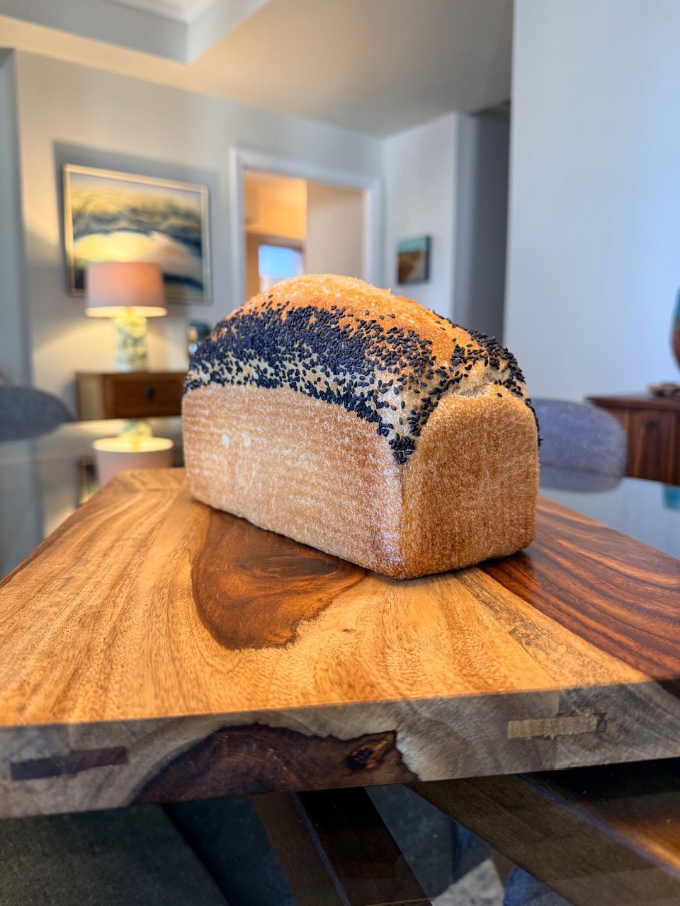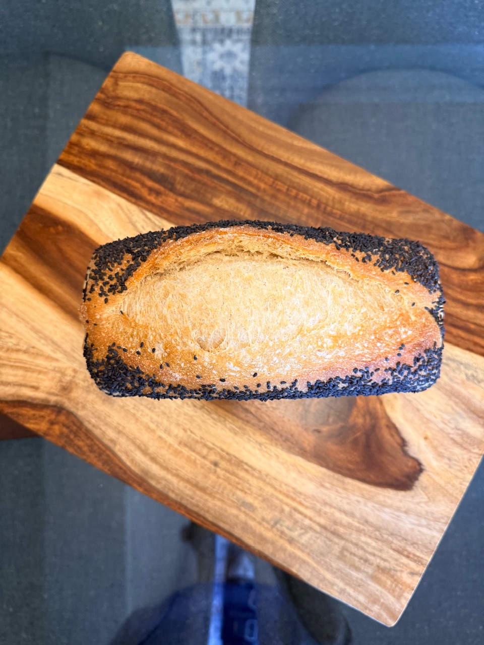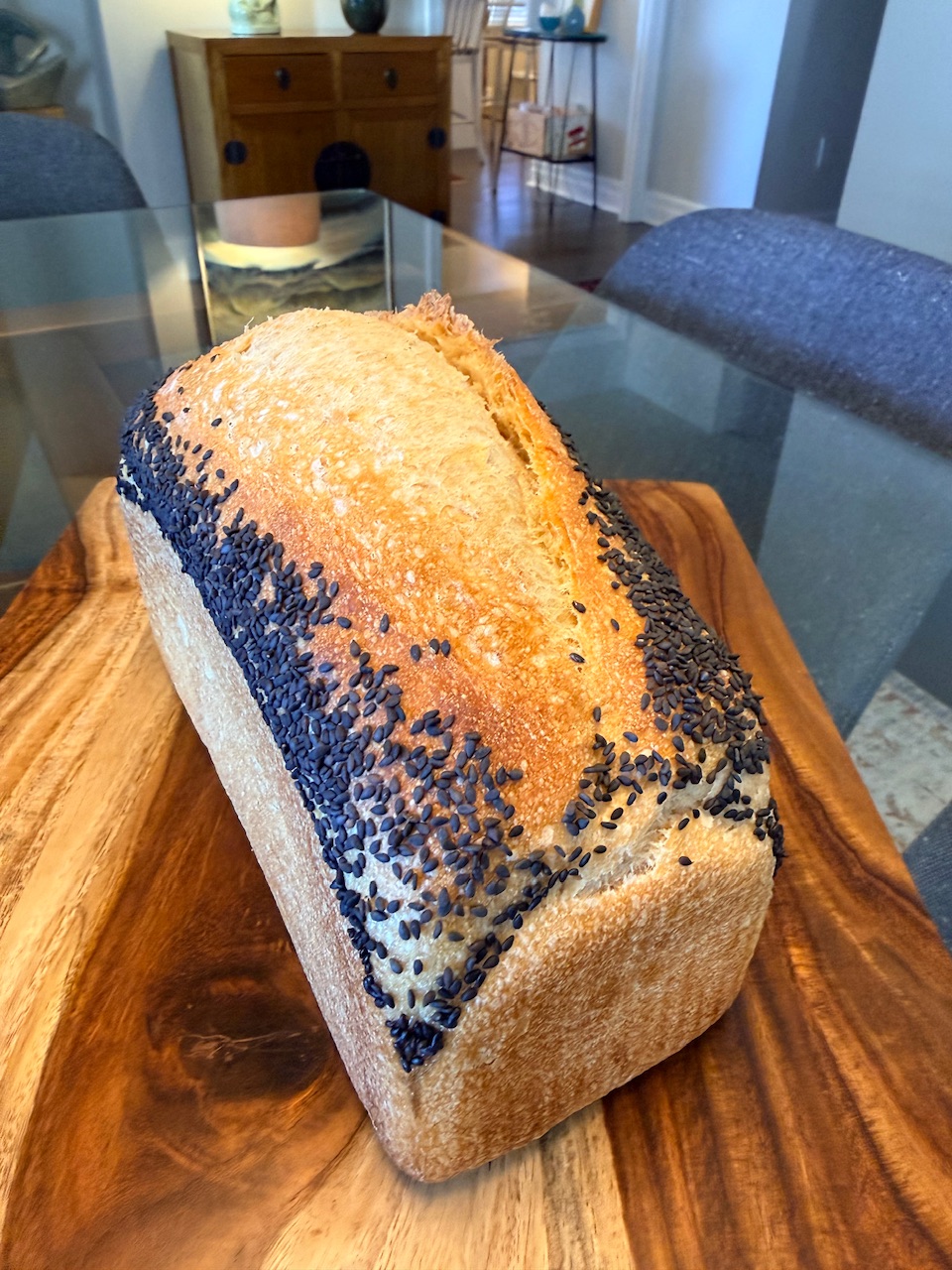 I got my hands on my whole kamut recently. I haven’t had any in quite some time. I’ve always loved that sunny yellow hue it gives the crumb. Similar to semolina, I find that sesame seeds really pair well with it. I haven’t sliced it yet but wanted to post this anyways. This one is another lean dough with a high pff at 40% which is now my standard for these types of Pullman loaves. I love the tiny blisters on the crust, even along the sides where the crust was in contact with the pan. I love how simple and stress free these bakes are. From the end of mixing in my Ankarsrum Assistent to the beginning of baking was just under an hour.