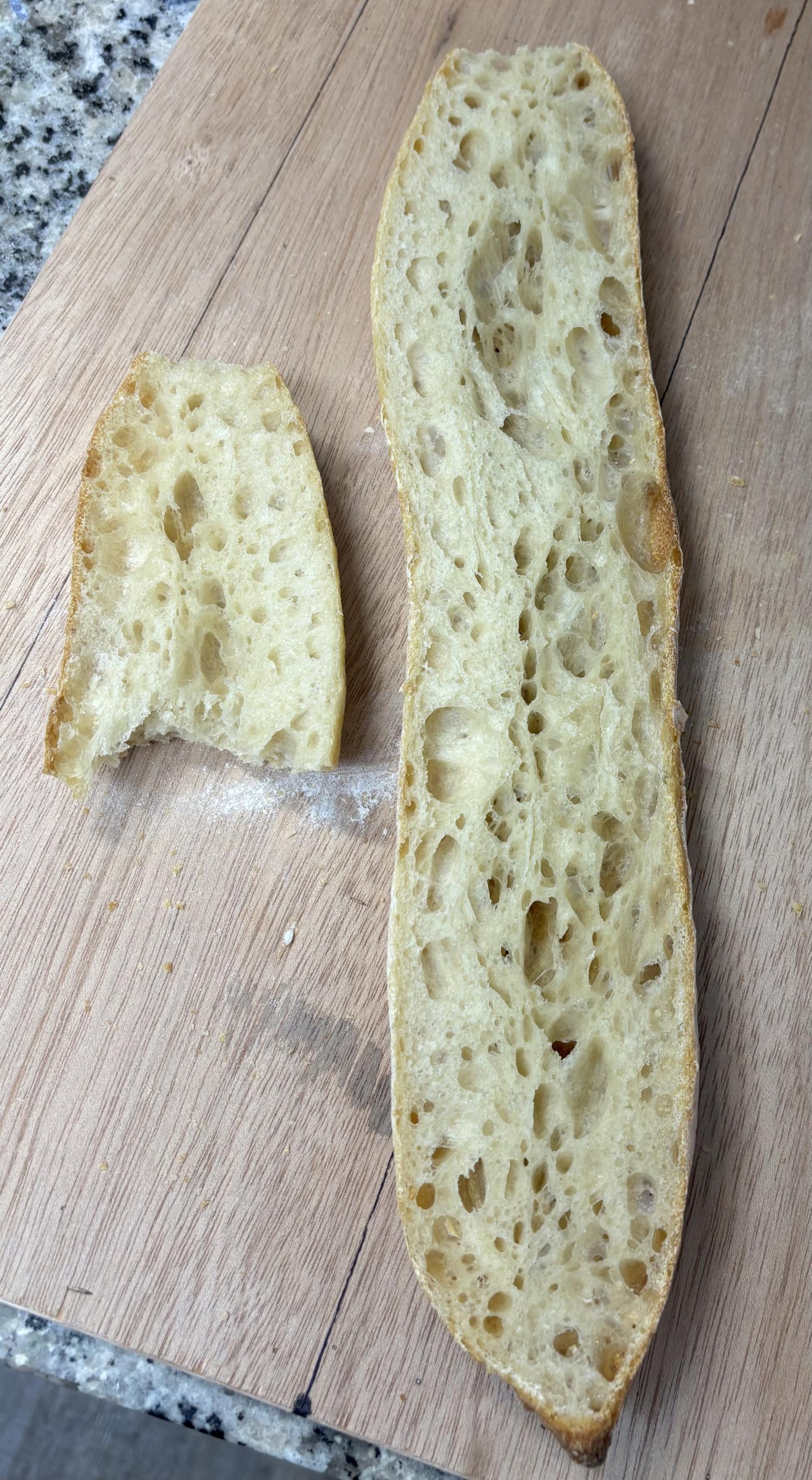 hello world - hoping for some expert advice on a problem I’m having often with my baguette bakes. Not sure if “cratering” is the best term, but some of my baguettes are collapsing in some sections. Today’s bake is a great example. The baguette on the left has an ear yet the baguette on the right has dipped/collapsed/cratered on one end. And while the crumb is decent, the final shape of the baguettes is a little squashed, more oval than cylindrical.