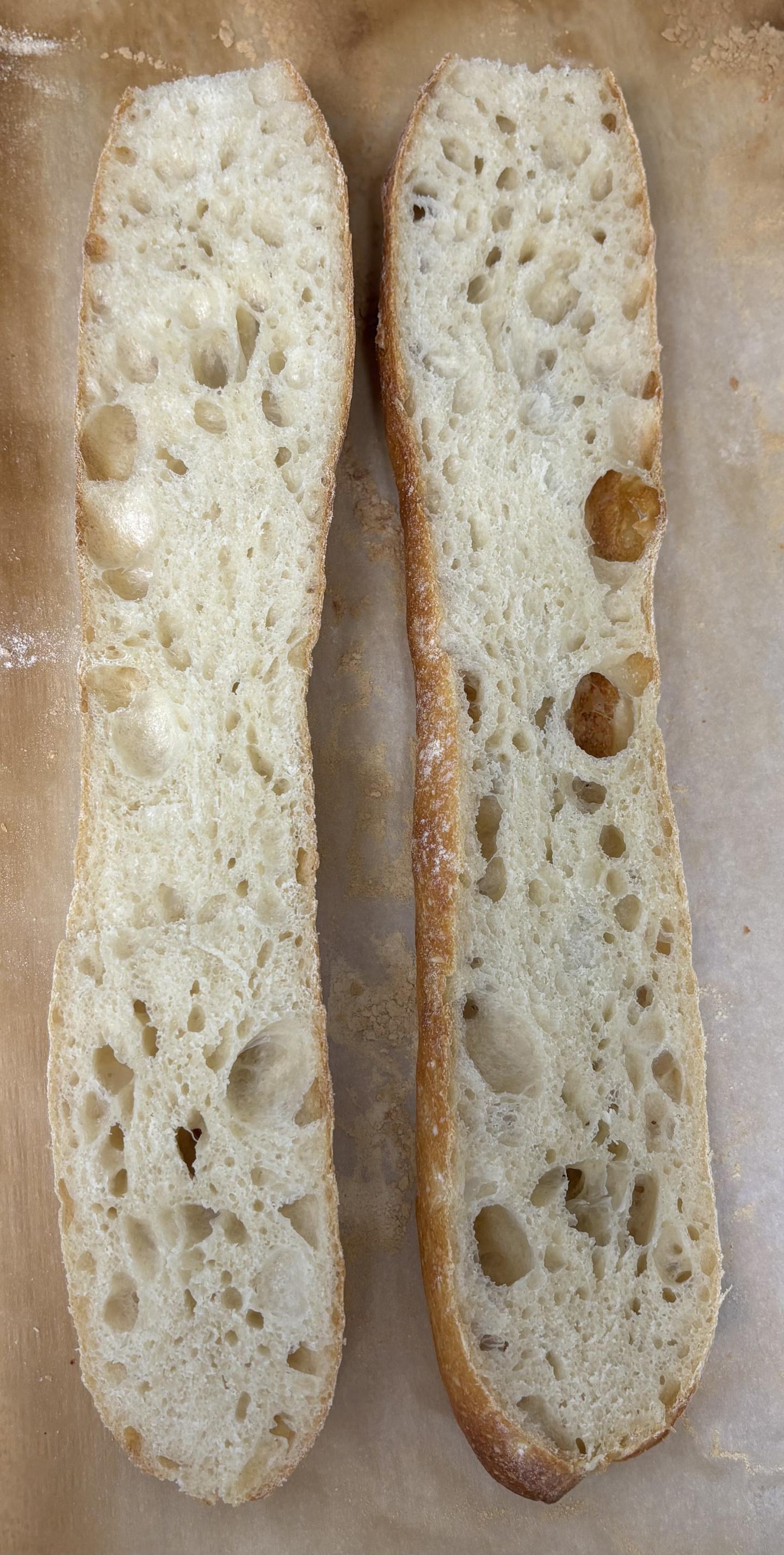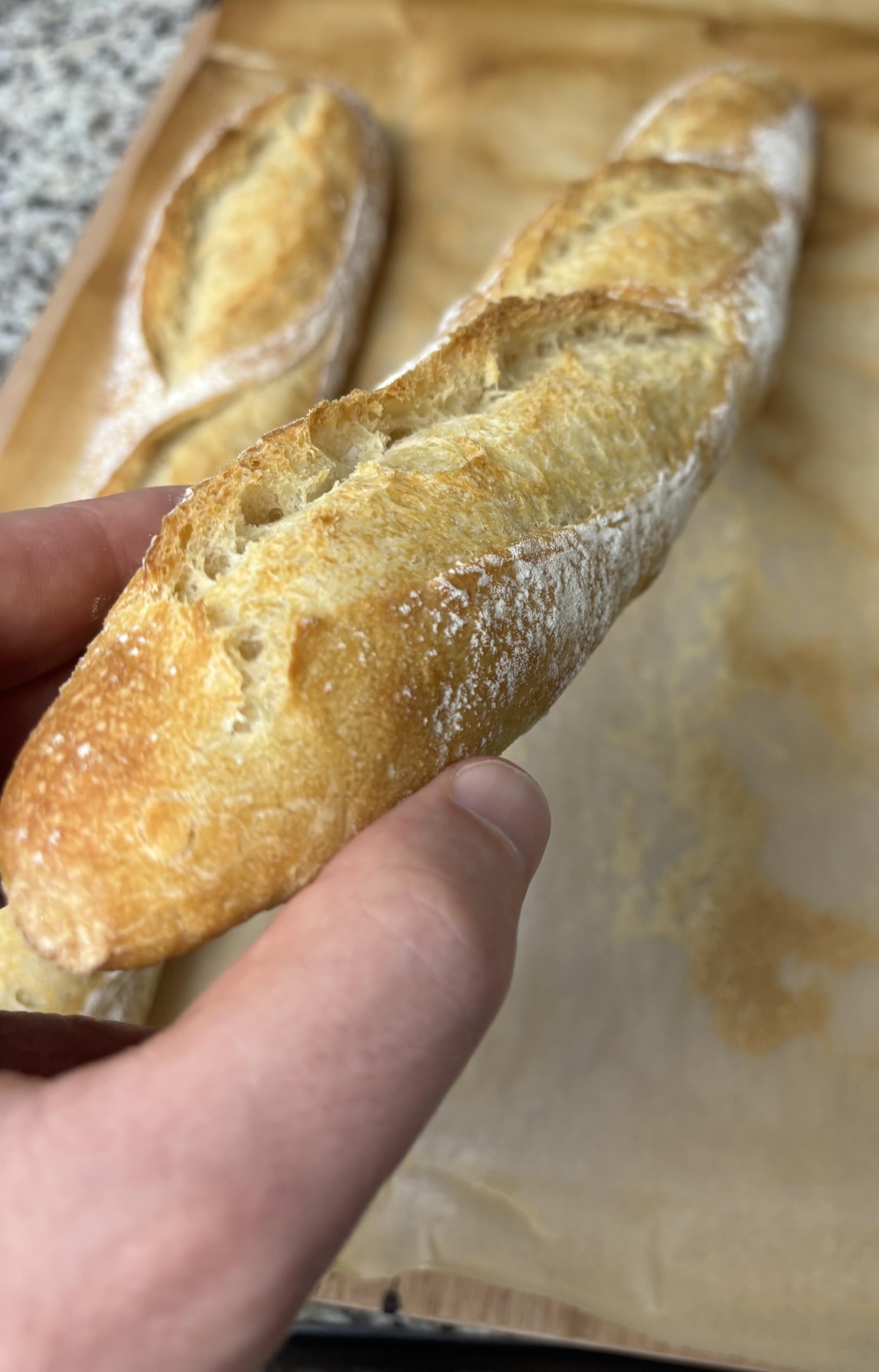 So I lowered ADY to 0.7%, reduced hydration to 65%, placed a sauce pan on each side of my baking plate, and tried to be conscientious of surface tension while forming.  And I also tried to use the above poke test tutorial.
