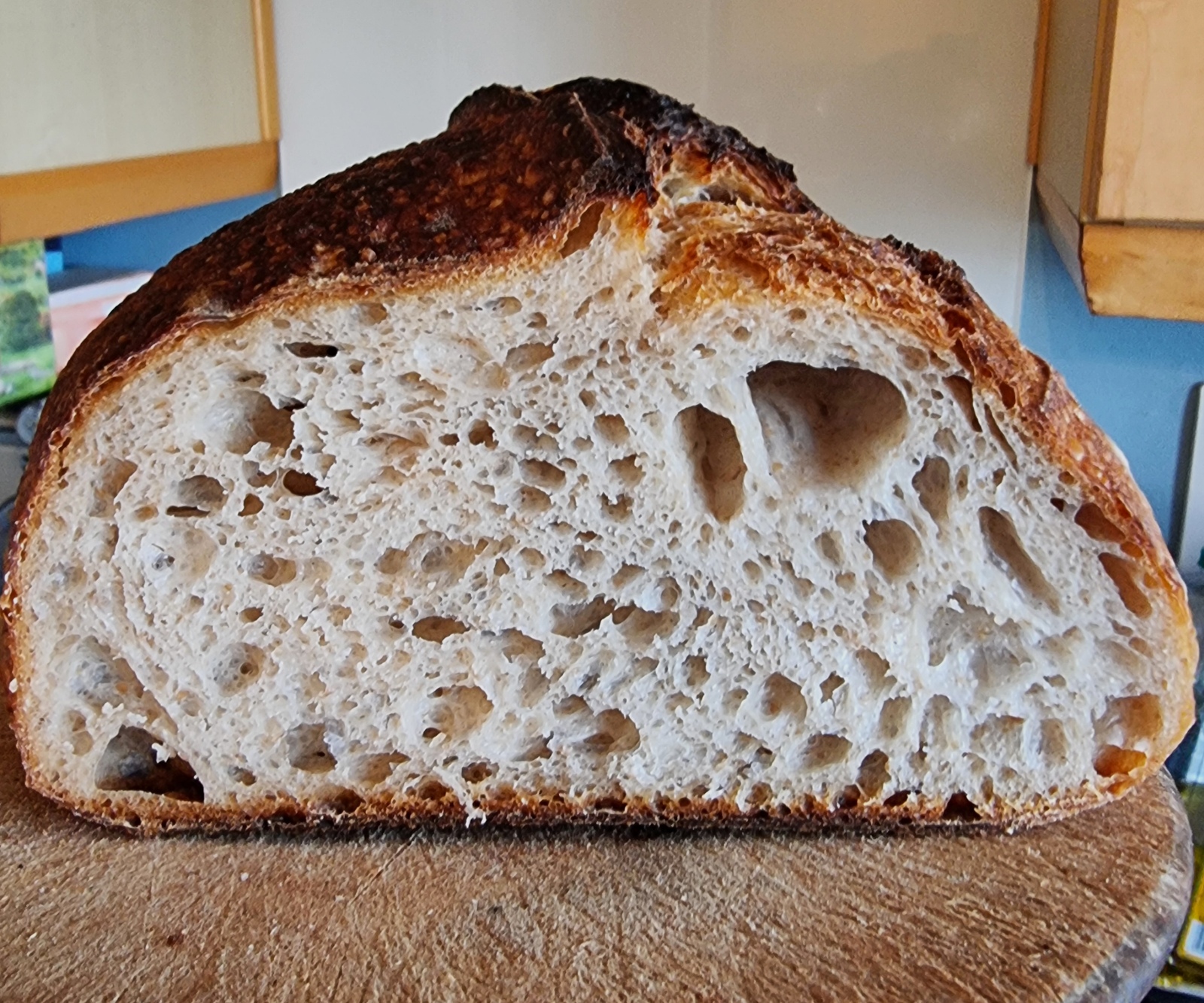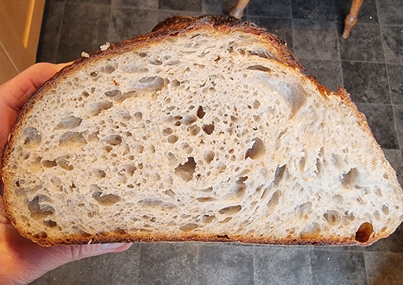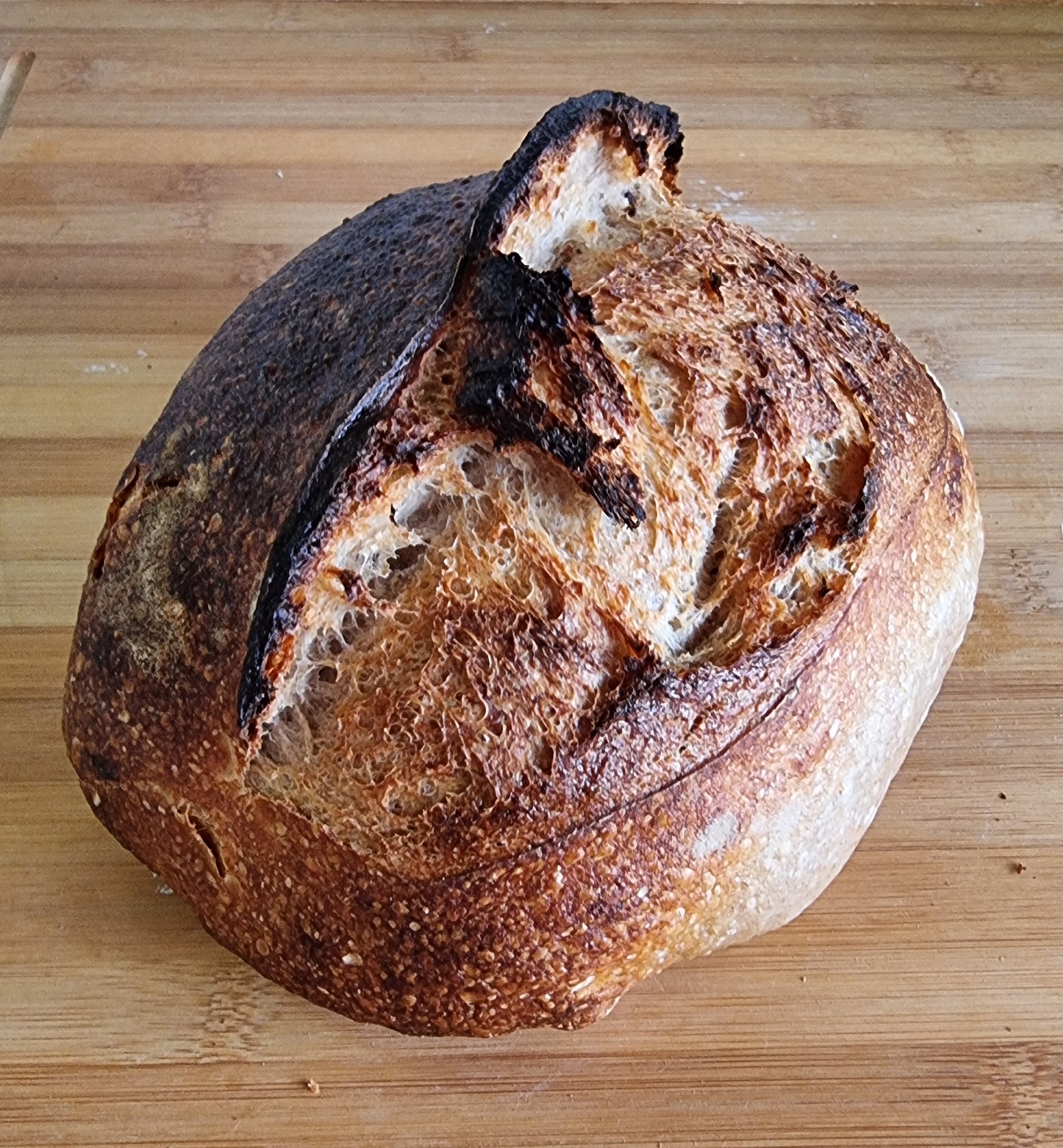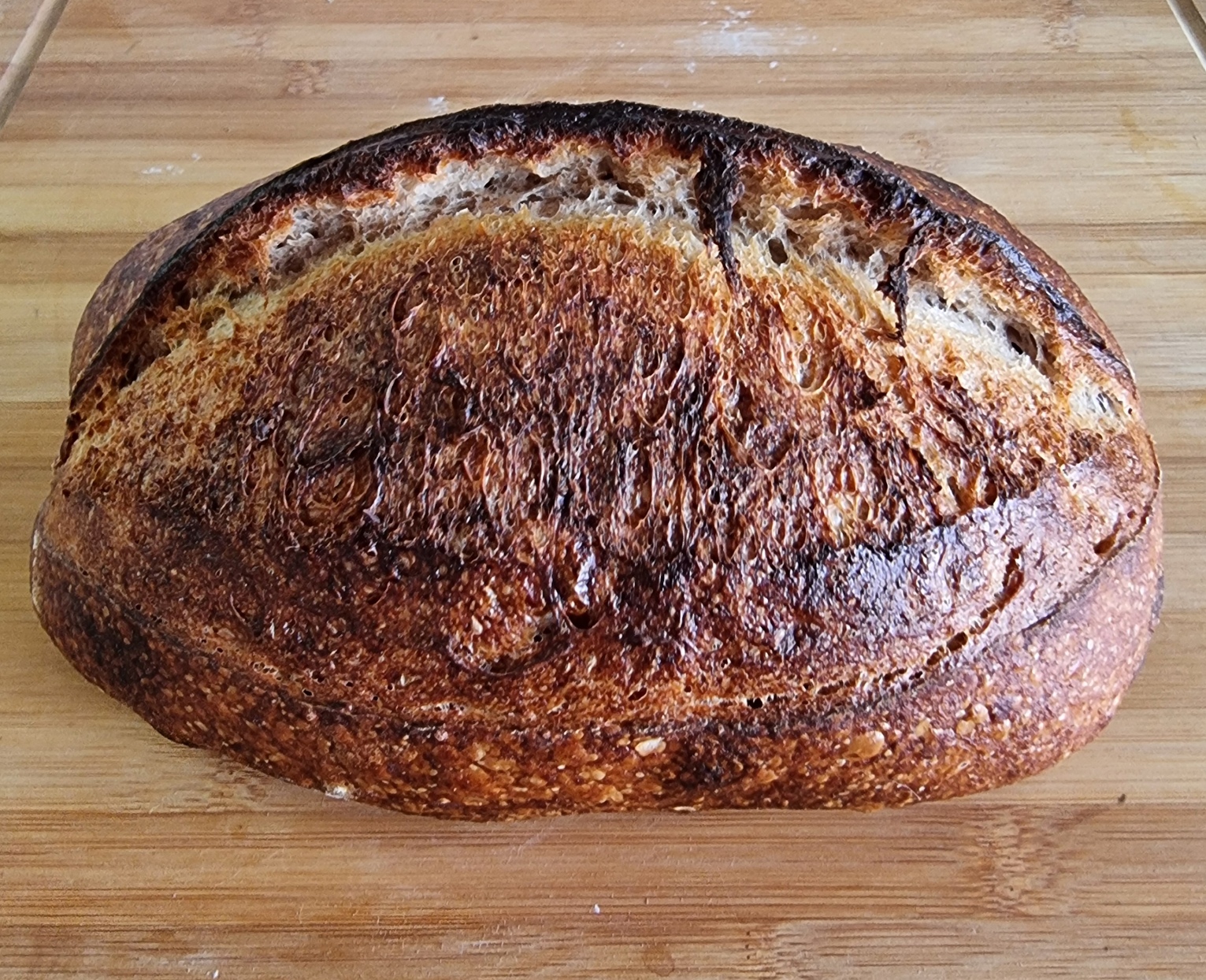 Another bake using my middlings levain technique. The recipe and procedure were similar to my last bake. This one had 17.5% Millers Choice + 4.5% barley + 3% rye grains, freshly milled.
