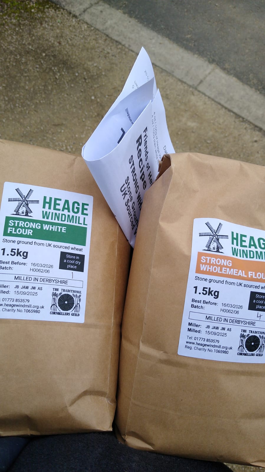 The flours at my disposal were a bit more limited that those used by Lance, but decided to go with 120g of a really nice wholemeal wheat flour from a 17C still functioning windmill in the East Midlands (see photo), 30g of commercial wholemeal rye, 150g AP, plus the prefermented flour, which consisted of 80g AP and 20g of the Allinson's strong white which contains the hemicellulase. Total flour was 400g. Total hydration around 70%.