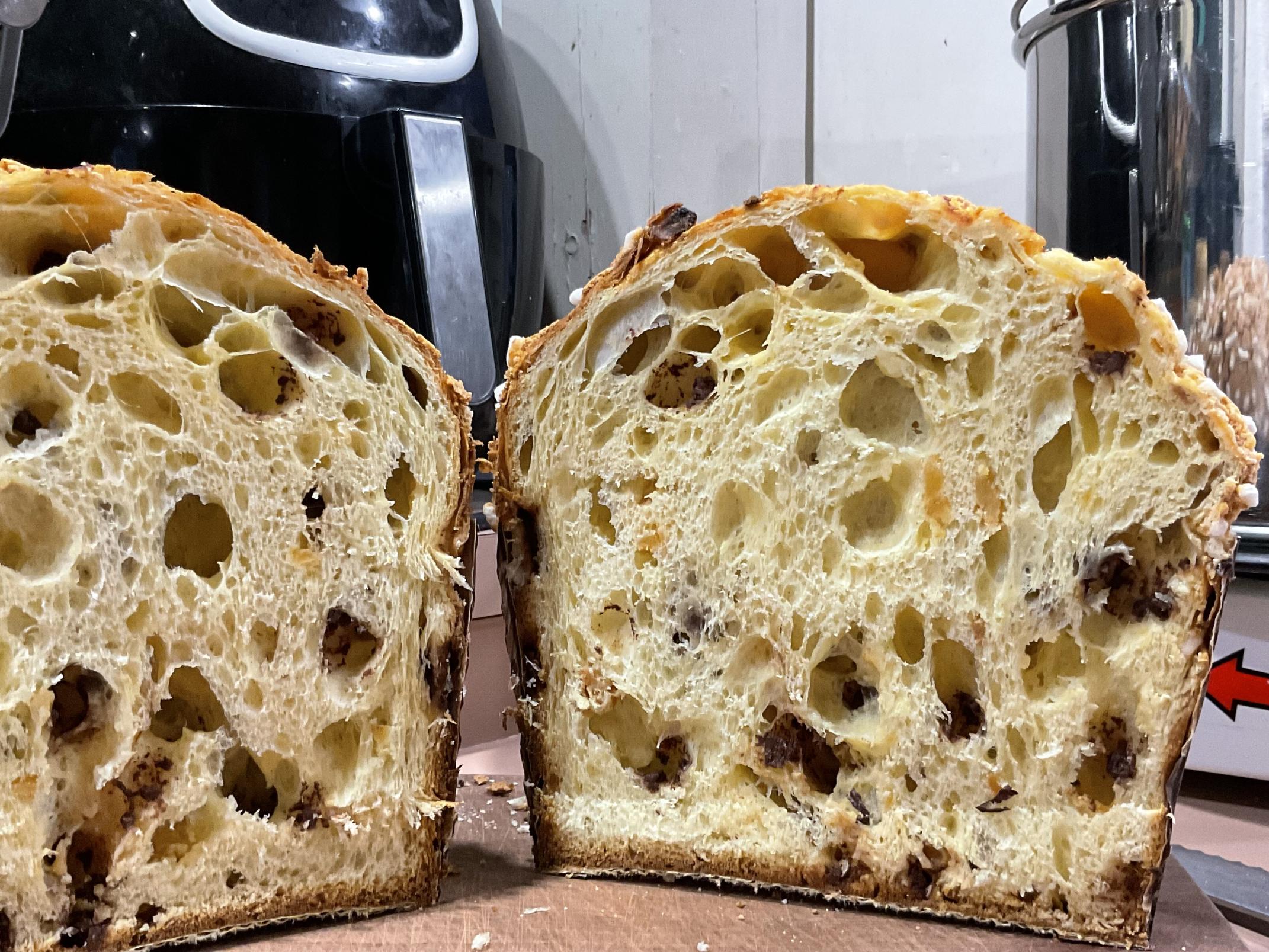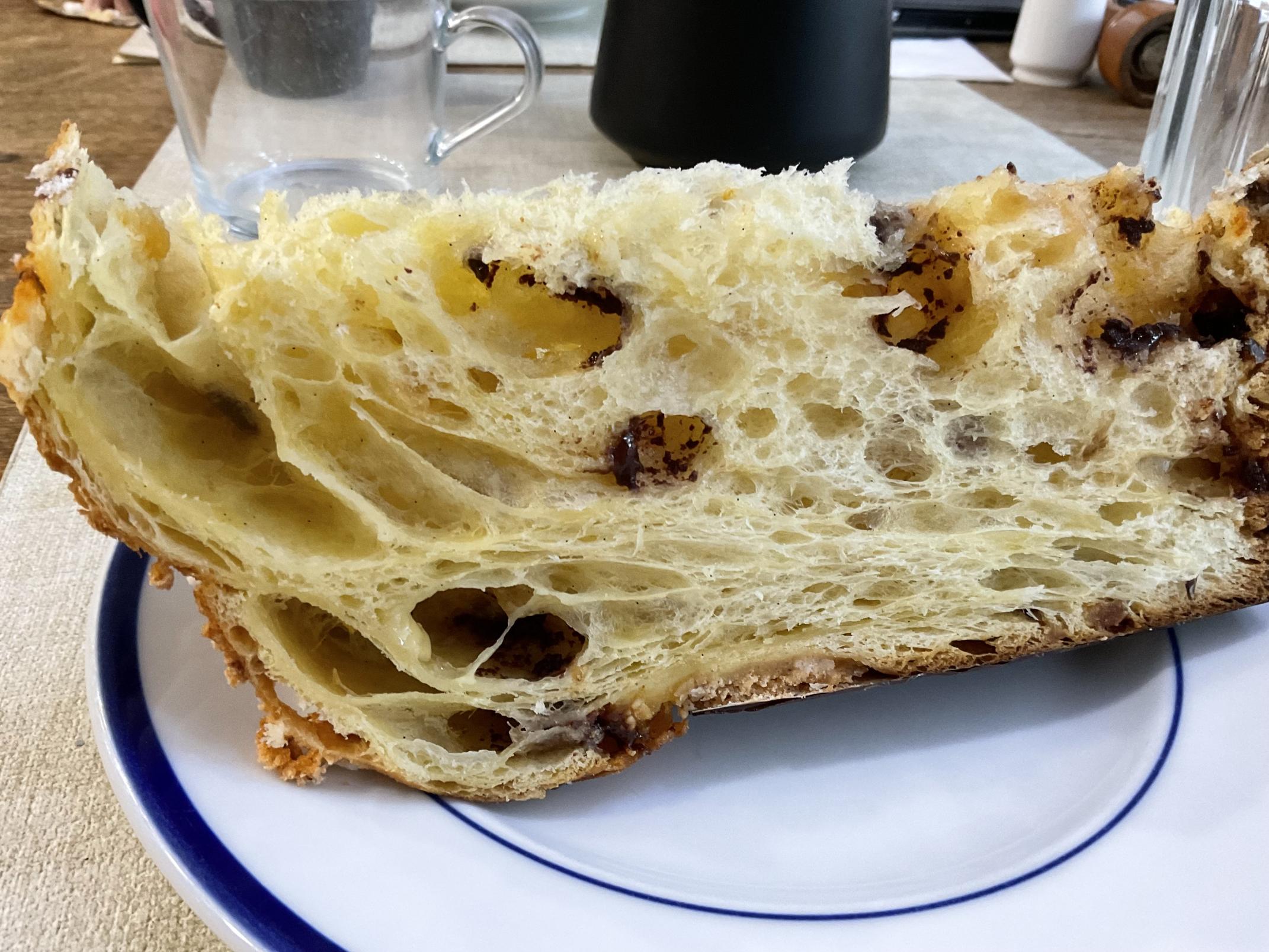 This is another ingredient adjustment trial, this time with somewhat increased yolks but not high hydration. It moves slightly in the “European” direction while still being lofty and light. I liked the result, and the dough handled extremely well.