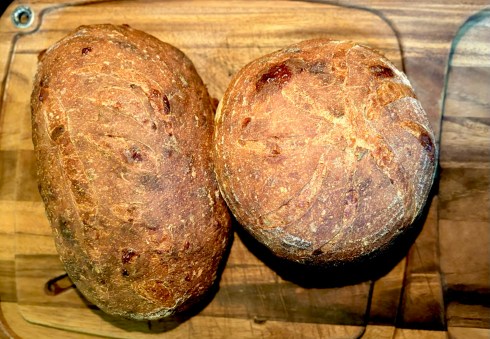 When you are ready to bake, preheat your oven to 500°F an hour beforehand and prepare for steam. Let your dough sit at room temperature while the oven is warming up. When ready to bake, score as desired. Prepare your oven for steam. I have a heavy-duty baking pan on the bottom rack of my oven with 1 baking stone above the pan and one on the top shelf. I pour 1 cup of boiling water into the pan right after I place the dough in the oven. I then lower the oven temperature to 450°F and bake until they are nice and brown, and the internal temperature is at least 205 – 210°F.