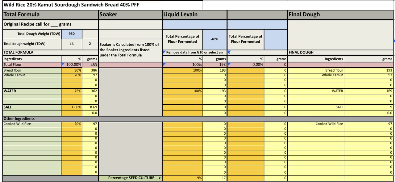 Add flours and knead until good gluten development, I will use my Ankarsrum Assistent and mix until a good windowpane is achieved about 12 mins. Add cooked and cooled wild rice and mix until well incorporated.