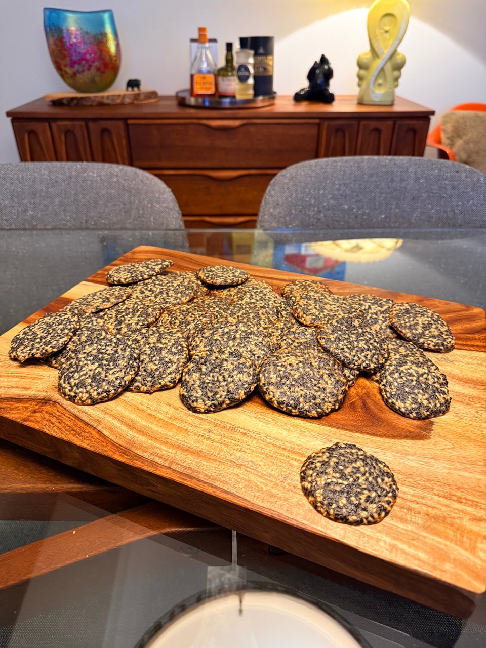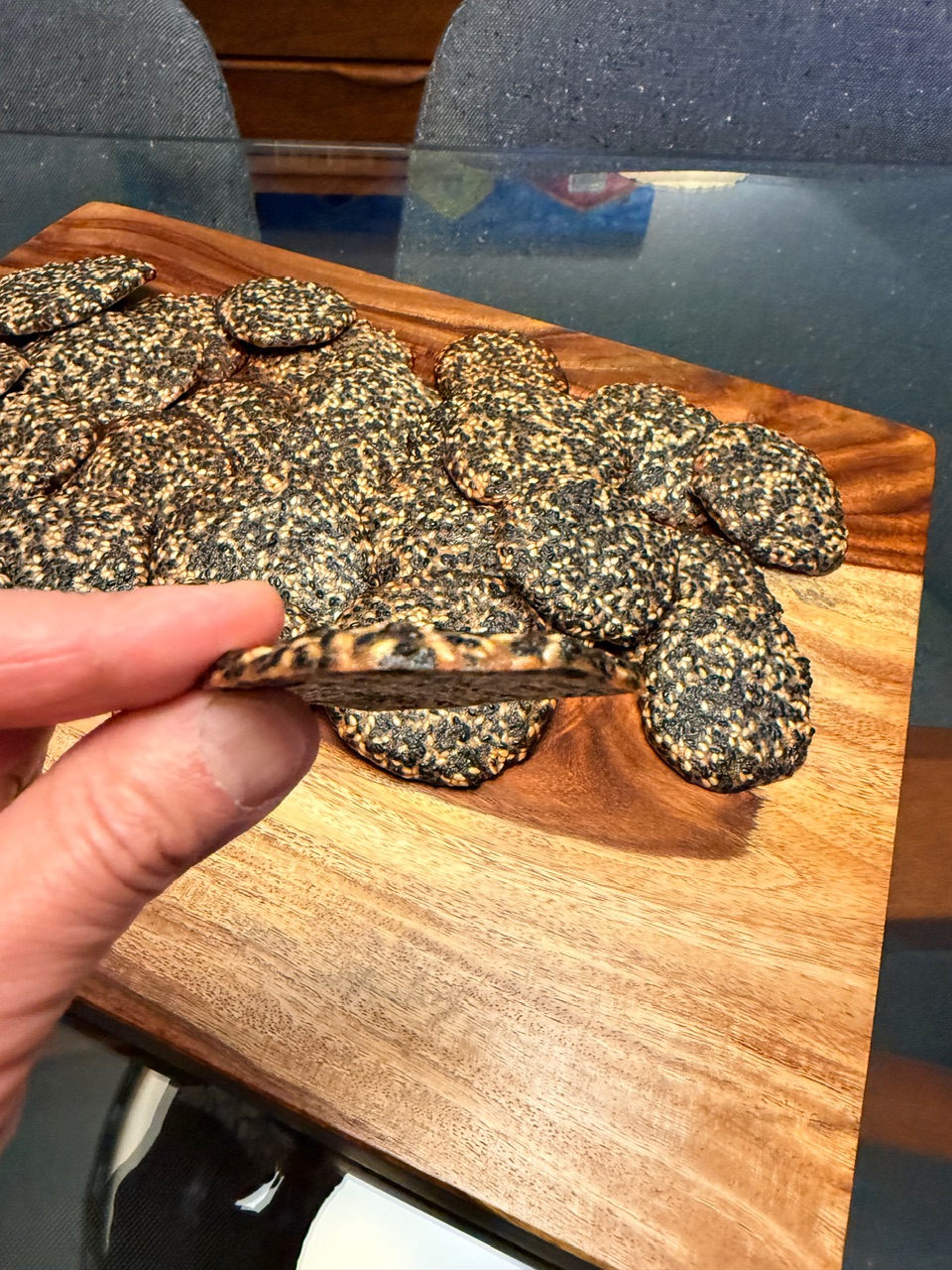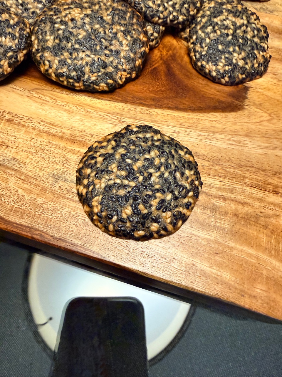 After my major panettone fail, I decided to makes these sesame crackers for the first time. I found a recipe on the net while looking for things to use the egg whites leftover from the panettone dough. I’ve long loved these crackers and have bought them at a local Chinese grocery store. I’m glad to have found a recipe that uses the egg whites and in fact is super easy.