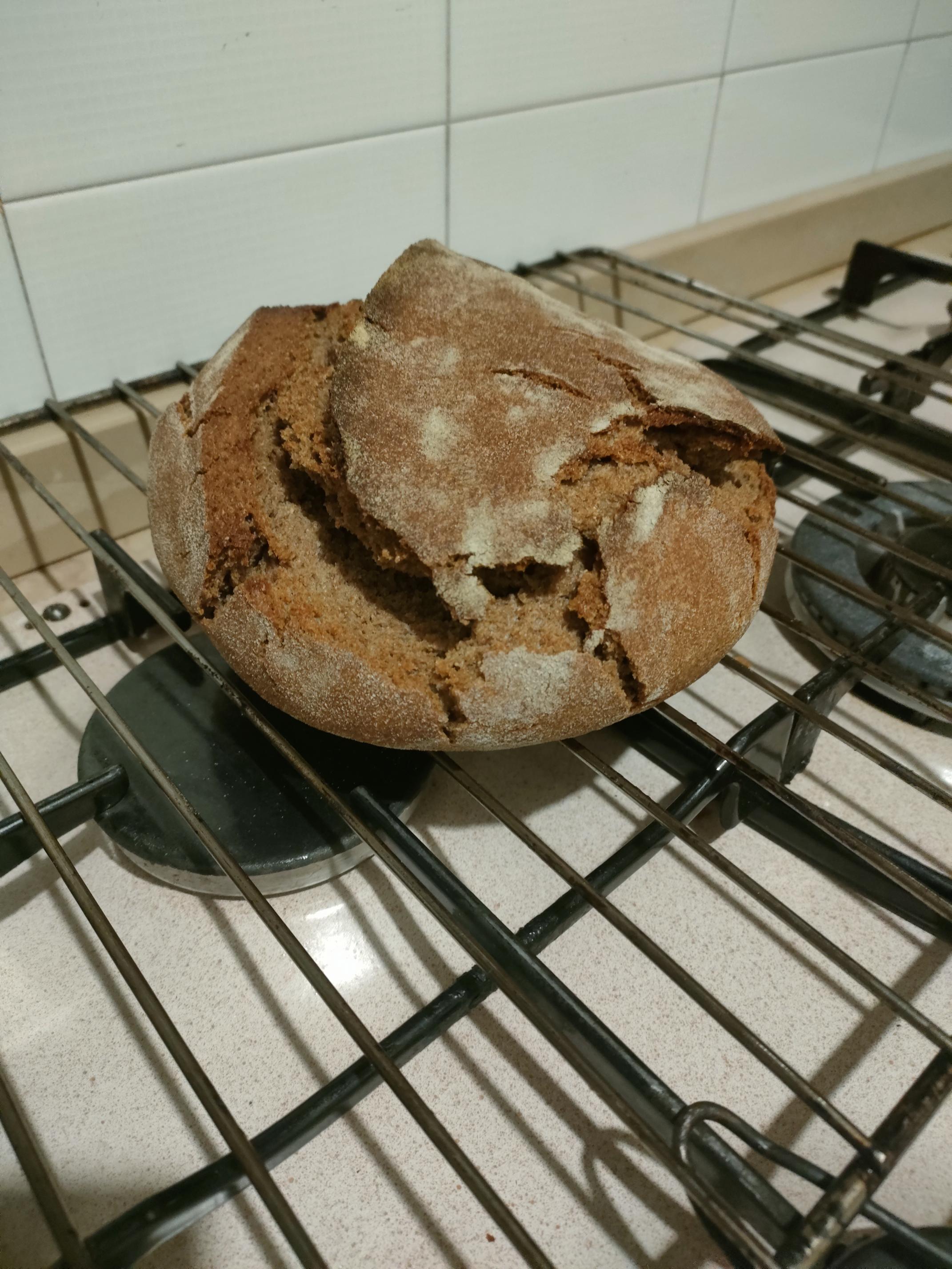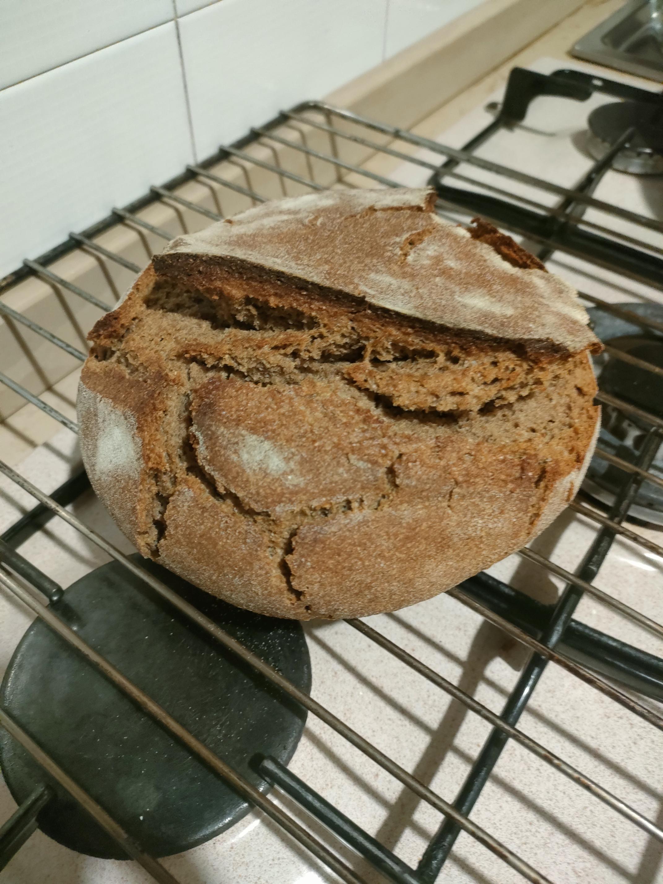 that's a swell-looking 1st rye. Congratulations! I like the natural bloom you got as it rose. How's the crust? -- Rob
