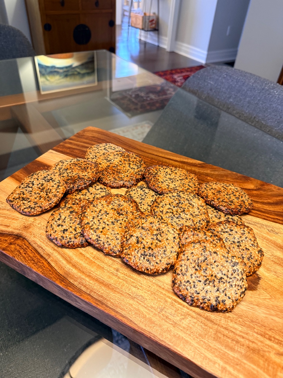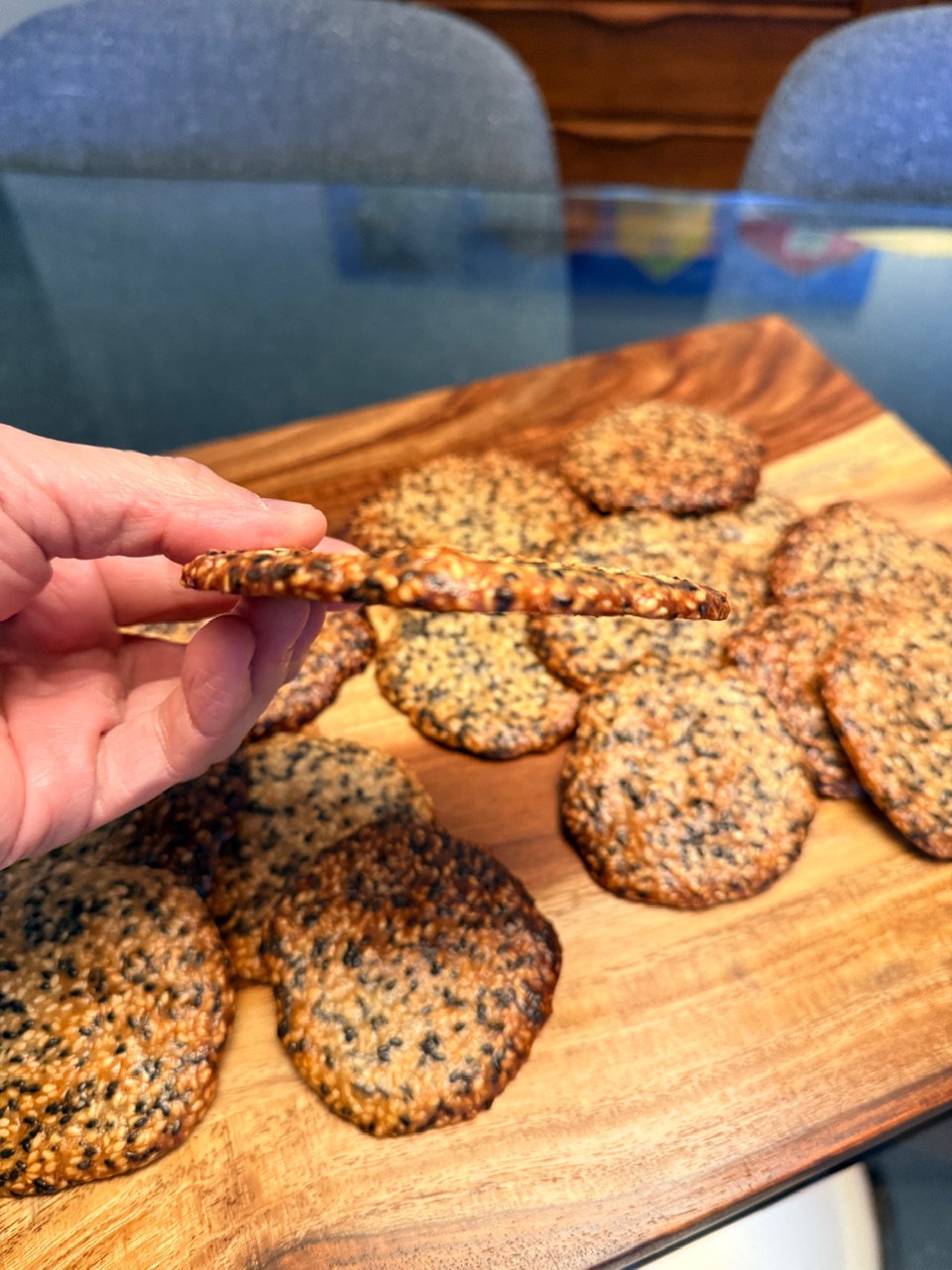 I am very impressed with how well the aquafaba worked for these crackers, in fact, I actually prefer the texture of these to the ones made with egg whites. They are crispier and more airy and I cannot detect any bean flavour at all. These are a must try if you like sesame seed flavour and are very quick to put together.