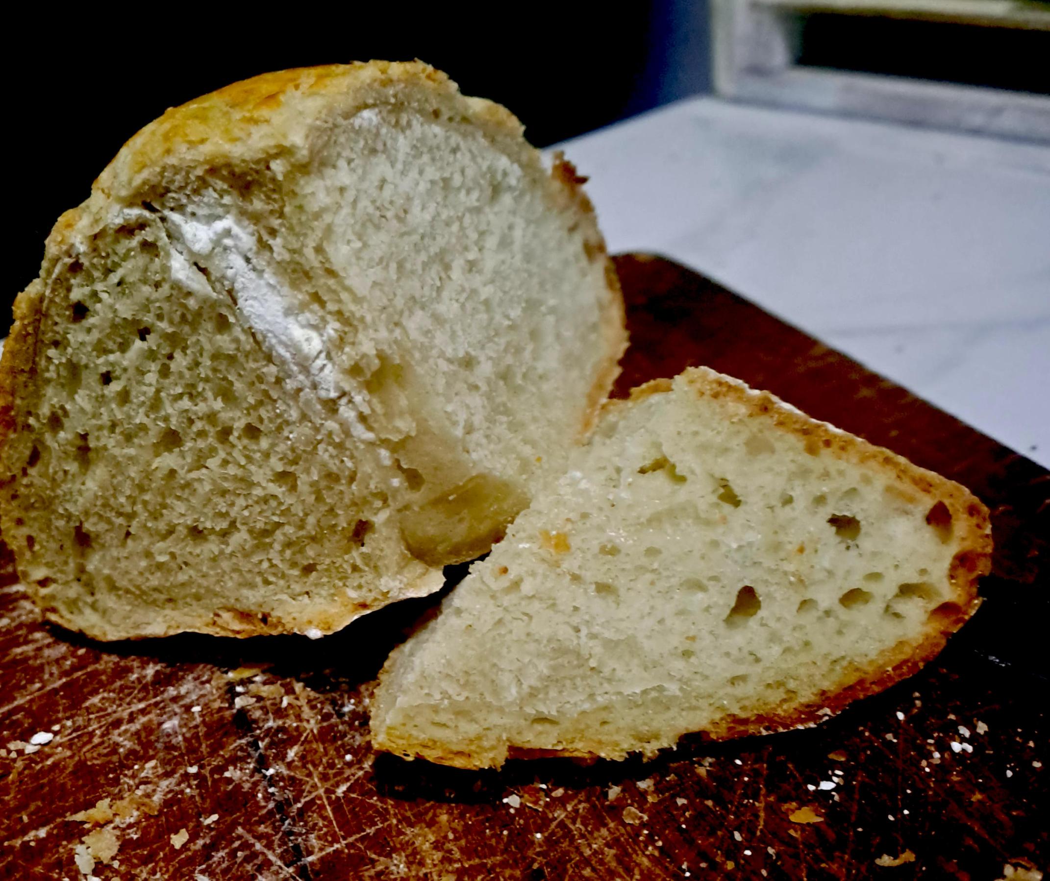 Crumb (showing white pocket of... flour?)