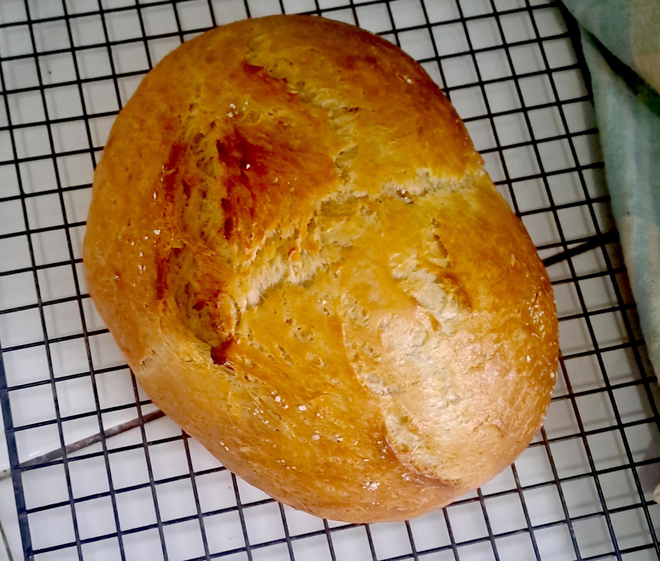 I had to coax it out of the bowl with a spatula but it dropped onto the peel where I was able to shape it, tucking under to provide some surface tension. No signs of over proofing. The dough ball was too soft to score properly but held its shape while I got it into the oven. There was a reasonable oven spring though the score marks filled-in. I ended with a round loaf with a nice crust.