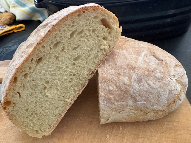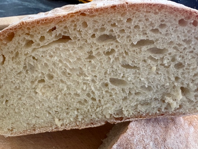 I couldn’t be more pleased. This will be my daily bread for a while. It’s so easy and tastes and smells like the best cake. This a case of greater than the sum of its parts. The blisters were just icing on the cake. I never get blisters. It was baked in my largest 100 yr old granite ware roaster . Lid on 15 min off 30 min. 400°.